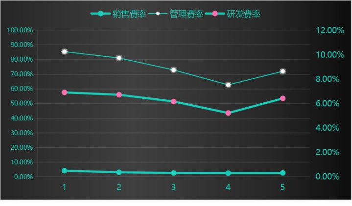 从通富微电最近五年销售费用率,管理费用率和研发费用率情况来看,管理费用率为8%以上,是三大费用率中最高的,其次是研发费率为6%以上。也就是说研发支持并不是费用率的主流,研发支出少很难出现颠覆性的技术,只能是对原有技术的修修补补。